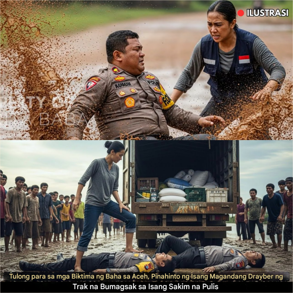 TULONG PARA SA MGA BIKTIMA NG BAHA SA ACEH, HINTO NG MGA TIWALAWANG PULIS, SUWERTE LANG AY MAY MATAPANG NA DRIVER!