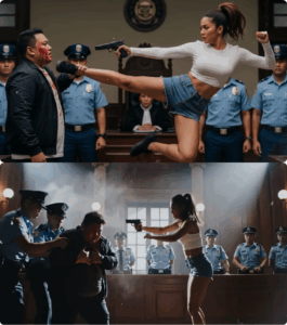 Ang dalawa pang siga, sabay na dumiretso sa kanya, ang isa may hawak pang bakal na tubo. Mas maingay ang hangin kaysa sa kanilang yapak, pero mas mabilis ang pagtapat ni Rosa. Hinayaan niyang lumapit sila, para mas malakas ang impact. Sa huling segundo, dumapa siya sa lupa, pinaikot ang paa, at gumuho ang dalawang siga na parang mga saging na binunot sa kawayan. Natanggal ang tubo sa kamay ng isa, gumulong sa semento, at tumigil sa paanan ni Nora.