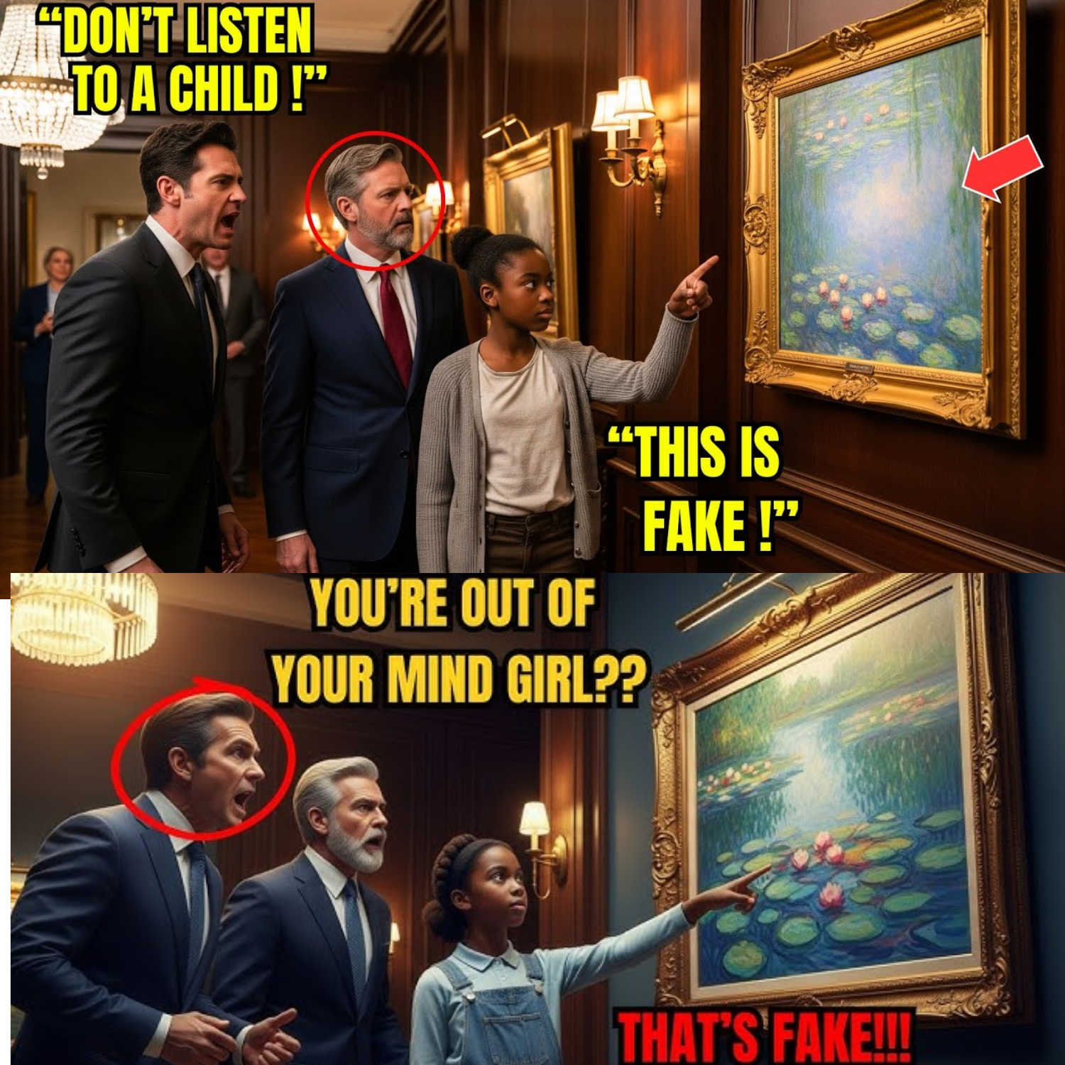 Mrs. Victoria Peton’s venomous voice sliced through the golden-lit gallery of the Witmore Mansion, shattering the evening’s elegance. “What is this little black brat doing near my precious painting? Get her filthy hands away from it right now!” She clapped her hands violently, treating 12-year-old Zara Williams like a stray dog. The wealthy guests turned, faces frozen, as Marie Williams—Zara’s mother and head housekeeper—rushed forward, trembling in her simple uniform. “Please forgive us, Mrs. Peton. Zara, move away this instant.” But Zara stood motionless, her intelligent eyes locked on the $12 million Monet, ignoring the humiliation. Instead, she spoke in perfect, aristocratic French: “That painting is fake.” The gallery erupted in gasps. A maid’s daughter had just declared their masterpiece a fraud, in flawless French. How could a child know what million-dollar experts missed?