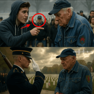 As Frank leaned forward, his balance faltered. The box slipped from his coat, and the Bronze Star skittered across the stone. He reached out, trembling, to retrieve it. But before he could, a teenager’s voice cut through the crowd: