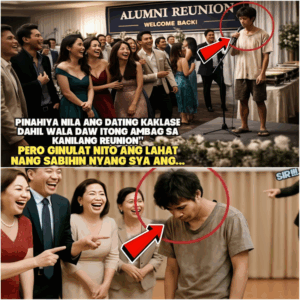 Nanatili siyang nakaupo sa loob ng ilang segundo, hindi sure kung siya nga ba ang tinawag. Pero habang nagtatama ang mga mata ng buong venue sa kanya—lalo na ang apat na nang-insulto kanina—unti-unti siyang tumayo.