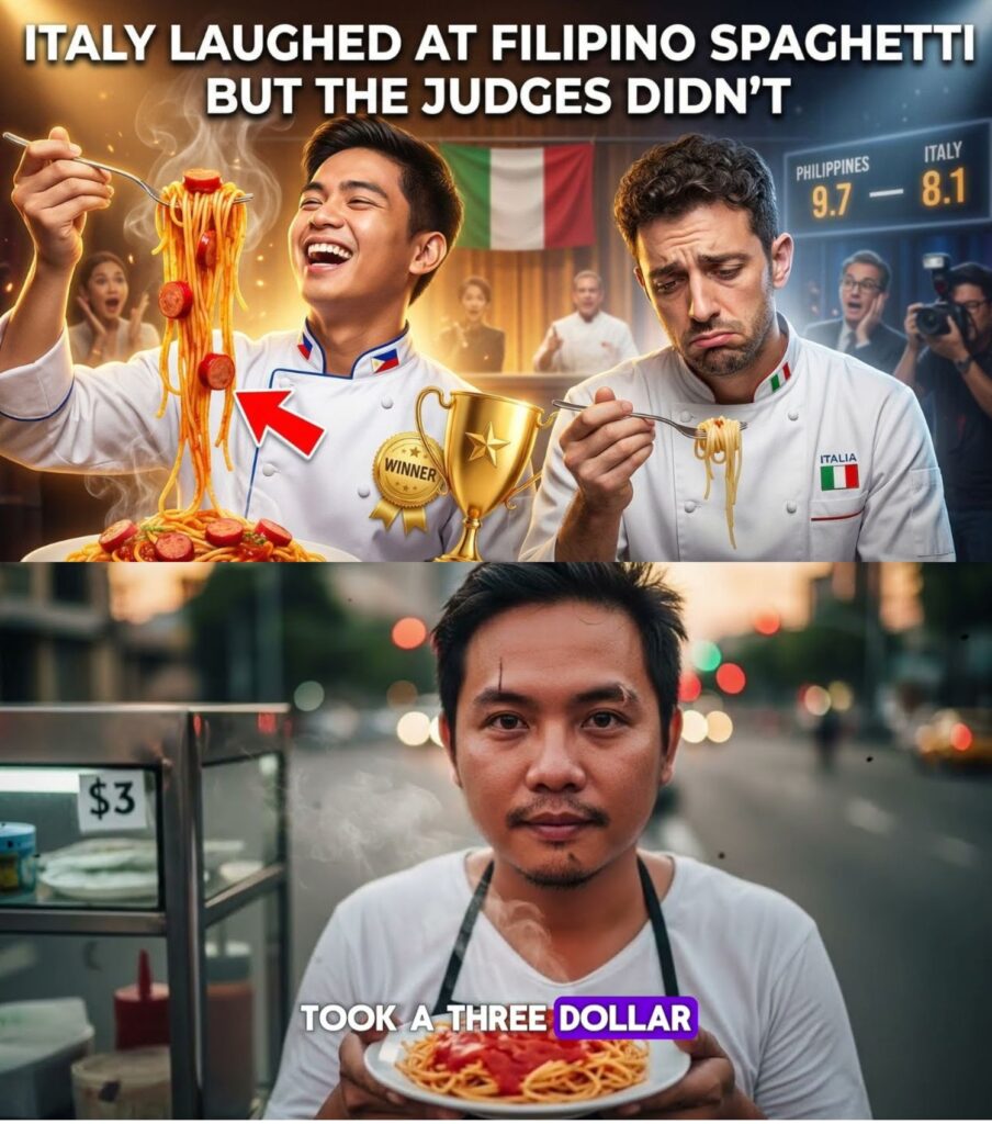 Sa mundo ng mga chef, may mga pagkain na itinuturing na sagrado—at may mga ulam na, kahit hindi sinasabi nang direkta, parang binabastos kung ihahambing sa kanila. Sa Italya, ang pasta ay hindi lang pagkain; ito ay pambansang yaman, kultura, kasaysayan, at halos relihiyon. Kaya noong Setyembre 14, 2024, nang sa gitna mismo ng Roma, sa entablado ng International Pasta Championship, tumayo ang isang plato ng Pilipinong matamis na spaghetti—may banana ketchup, hotdog at grated processed cheese—katabi ng mga obra ng mga Michelin-starred na chef at… nanalo, parang lindol sa buong mundo ng gastronomiya.