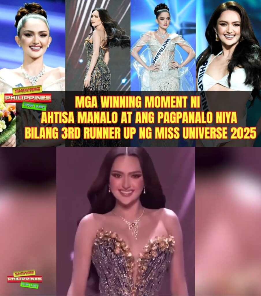 Sa gabing kumikinang ang entablado ng Miss Universe 2025, isa ang pangalan na paulit-ulit na sumisigaw mula sa audience, mula sa Twitter hanggang sa mismong arena: Ahtisa Manalo, Philippines. Bagama’t hindi niya nakuha ang korona, ang pagkapanalo niya bilang 3rd runner-up ay hindi basta placement lamang—ito ay naging simbolo ng muling pag-angat ng Pilipinas sa pageant world matapos ang ilang taon ng pananahimik. Ang sandaling iyon nang tawagin ang kanyang pangalan ay nagmistulang pagputok ng emosyon, hindi lang mula sa mga Pilipino sa Las Vegas, kundi mula sa milyun-milyong nanonood sa Pilipinas na halos mawalan ng hininga sa bawat announcement. Marami ang nagsabi na ito ang comeback ng Pinay queens sa global stage, at si Ahtisa ang naging mukha ng bagong yugto—hindi kasing ingay ng nakaraan, ngunit mas matapang, mas elegante, mas kinakalkula.