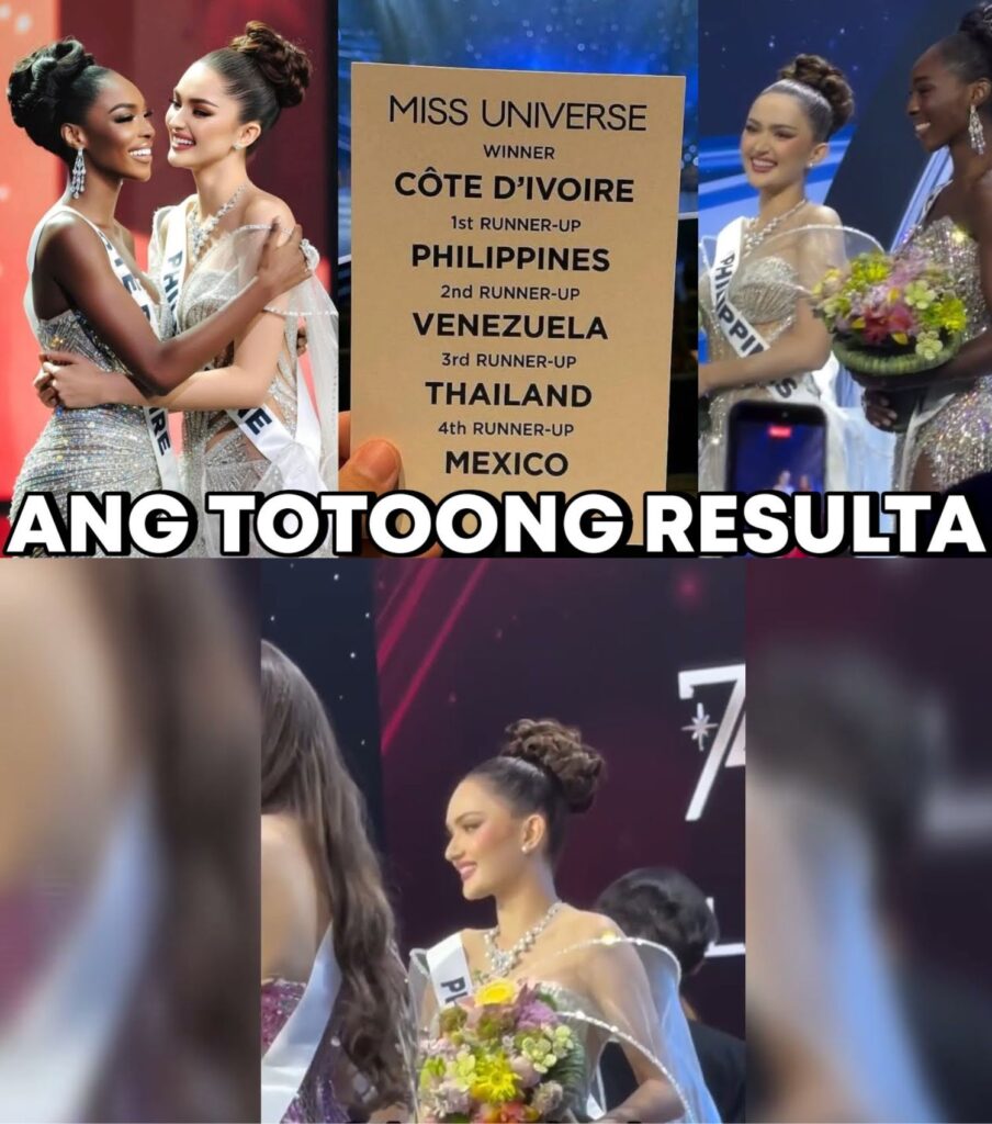 Sa gitna ng matinding hiyawan sa Las Vegas para sa 74th Miss Universe 2025, tumapos ang gabi sa mga ngiti, luhang may halong saya, at karaniwang pageant euphoria—ngunit sa likod nito, may kumakalat na screenshot online na nagbago ng ihip ng hangin. Isang larawan na sinasabing “Official Result Card” ng Top 5 ang biglang sumulput sa social media, at para sa maraming netizens, hindi ito pangkaraniwang leak. Ang dokyumentong iyon, ayon sa mga nag-post, ay nagpapakita ng ibang ranggo kumpara sa in-announce sa live telecast. Mula sa Reddit, TikTok edits, hanggang sa X threads na umaabot ng libo-libong retweets, iisang naratibo ang bumabakas: Niluto ang laban. At hindi lahat ng nakita sa TV ang tunay na nangyari.