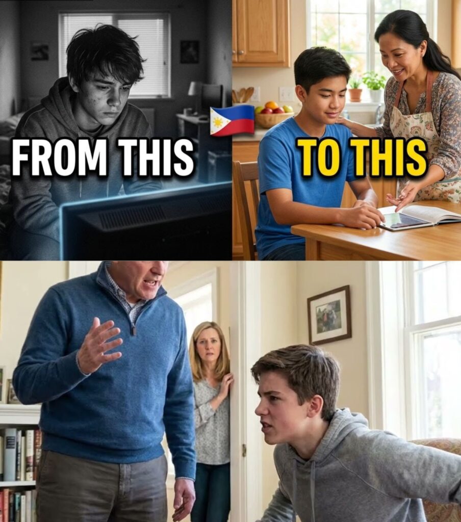 Sa sumunod na dalawang linggo, mas dumami ang pagbabago. Naligo siya nang regular, naglaba ng damit niya, kumain ng pagkain sa mesa imbes na chips sa kwarto. Para kay Rebecca, bawat maliit na kilos ay parang himig ng pag-asa, kahit takot siyang umasa. Pero may isa pang nakapansin ng ibang bagay—si James—hindi sa mukha ng anak nila, kundi sa credit card statement. Philippine Airlines, $2,400. May hotel booking sa Cebu City. May travel insurance. Parang may tumusok sa sikmura ni James habang tinititigan ang screen. Tinawag nila si Ethan sa sala, at sa unang pagkakataon sa matagal na panahon, lumabas ito nang walang away, walang sigaw, walang pagbagsak ng pinto. Kalma siya. Halos may kumpiyansa. “Ikaw ba ‘to?” tanong ni James, hawak ang printout. “Nag-book ka ng flight papuntang Pilipinas?”