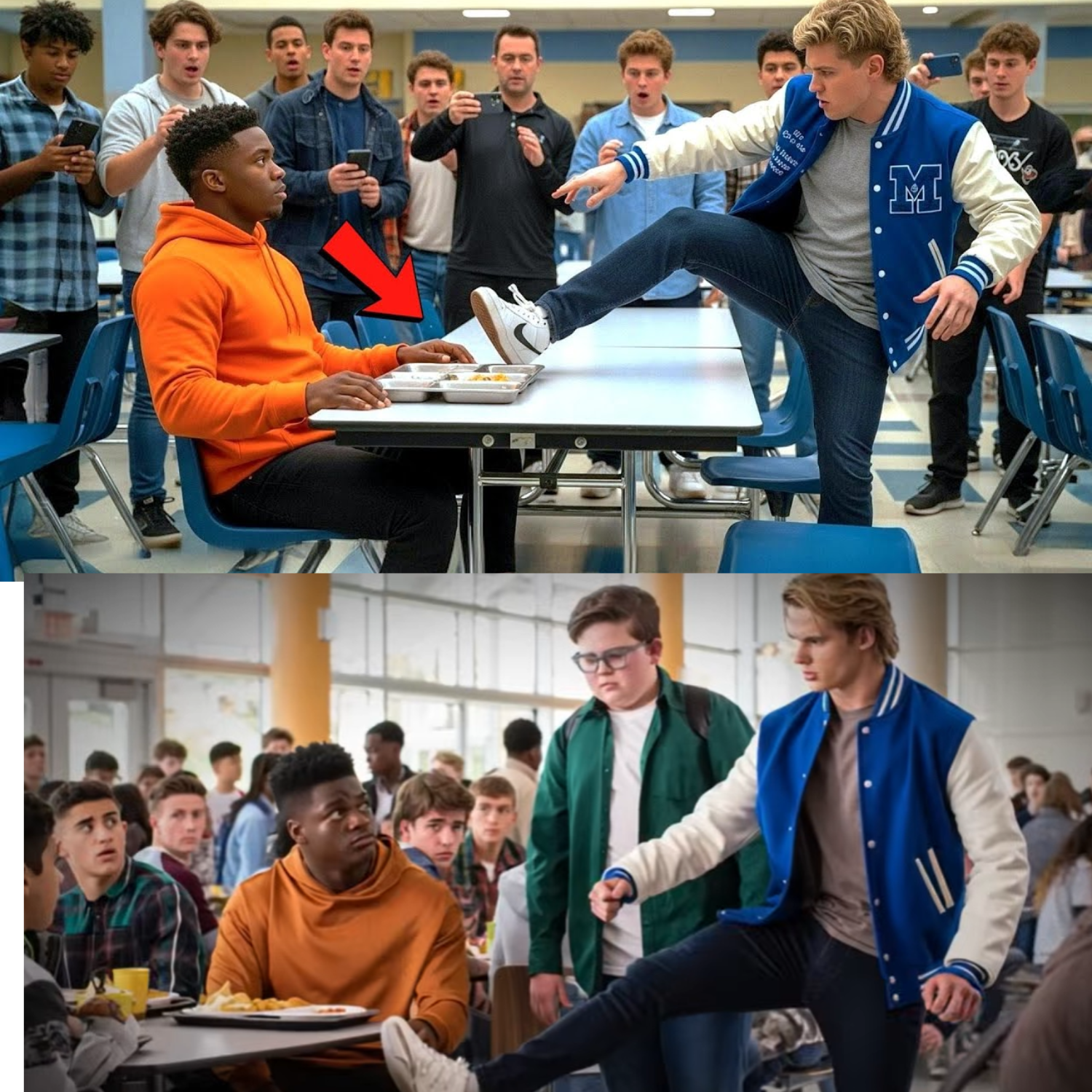 The morning had started like any other—bells ringing, lockers slamming, students shoving past each other, lost in their own dramas. Luther and Chris, both new to Ridgeway, navigated the chaos with quiet determination. Chris joked about missing their old cafeteria’s mystery meat, but Luther barely smiled. He wasn’t here to make friends; he was here to finish the year and move on. Trouble, however, has a way of finding those who try to stay invisible.